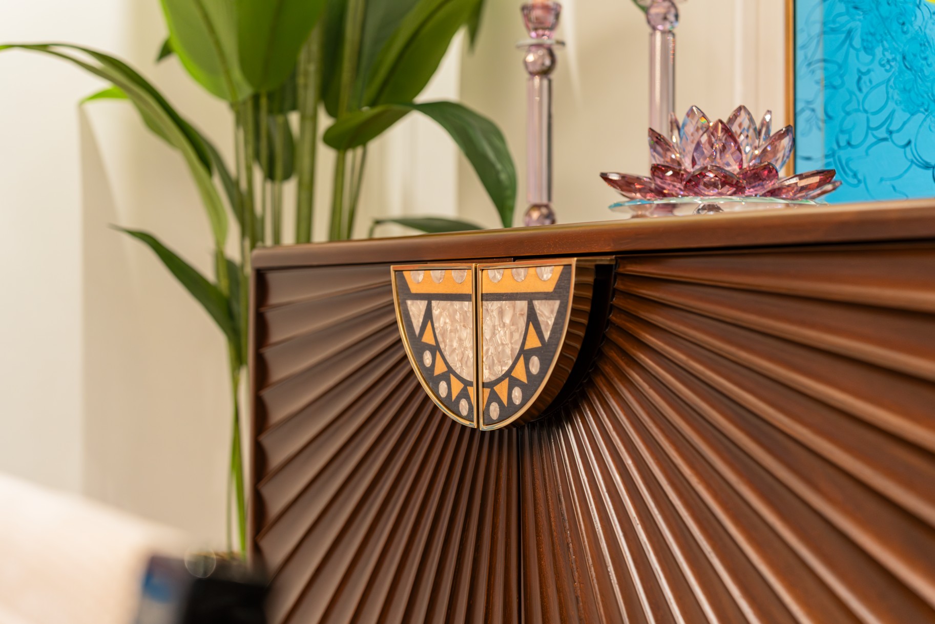 Mekanın kalbinde yer alan terracotta kadife kanepeler ve duvarda bir tablo gibi sergilenen etnik desenler, eve girenleri sıcak bir kucaklamayla karşılıyor. Sedef kakmalı özel tasarım mobilyalarla geçmişe selam gönderirken; mermer ve cam detaylarla modern lüksü dengede tuttuk. Daire Kehribar; sadece bir konut değil, her köşesinde farklı bir hikaye anlatan, sanatla ve konforla harmanlanmış sofistike bir yaşam sahnesi.